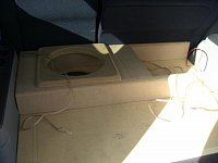 リアのオーディオボード製作中に ウーファーを計ったらなんと高さが足りず 急遽構造を変更になりました・・・。 (TOT) 今後のメンテナンスも考えた末 脱着式に変更。 BOXをもうヒトツ製作しクリアランス確保! 見切り発車は何事も危険です! (色んな意味での経験談) (爆笑)