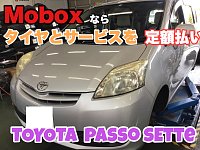 【車種】 トヨタ パッソセッテ 【作業内容】 新品タイヤ取付 タイヤの交換周期は約3-5年 基本ほ一度に4本交換するのでまとまった出費に なってしまいますよね!! ということで、月々の支払が定額払いでラクになる Moboxでご成約いただきました!! Moboxとは、タイヤ4本と作業工賃・2年間のパンク...