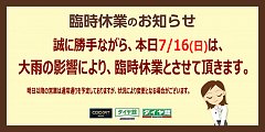 7/16(日) 臨時休業のおしらせ