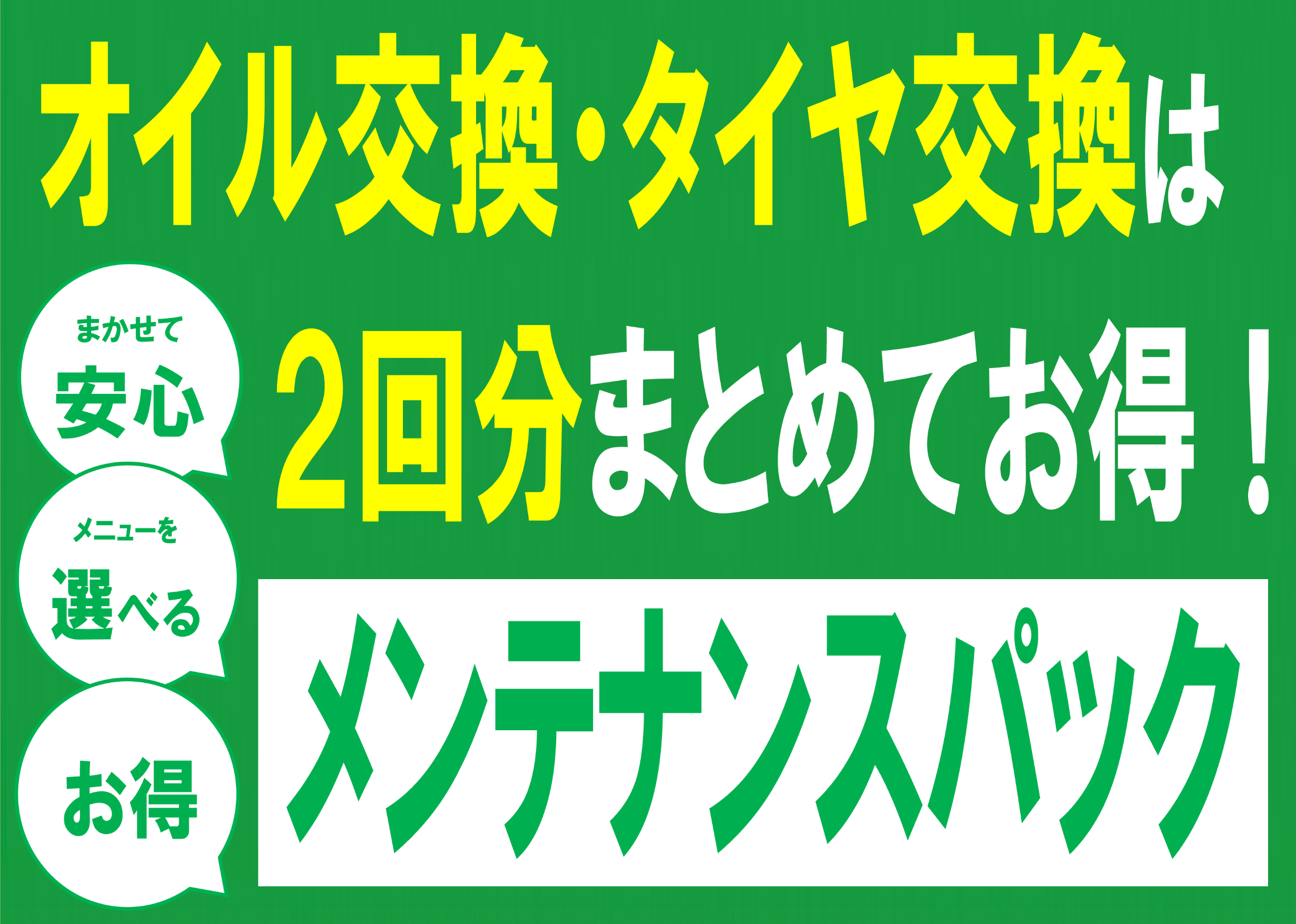 オイル交換や夏⇔冬のタイヤ交換はパックがお得♪ 《オイルプラン》《脱着プラン》《脱着・オイルプラン》の3種類からお選び頂けます。 オイル交換や夏⇔冬のタイヤ交換と、快適なドライブには欠かせない 選べるメンテナンスメニューがセットになったお得なパックです★ 価格やサービス内容等、詳しくは...