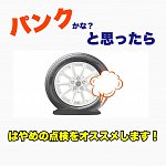 タイヤがいつもよりつぶれているような気がする…と思ったら お早目の点検をおススメ致します!! パンクの原因はさまざまですが、 修理可能なパンクでも対処が遅れてしまうと 修理ができなくなってしまい 新品タイヤへの交換が必要になります!! 今回のパンクはタイヤが地面に接地する部分(トレッ...