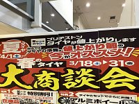 3/17(土)、18(日)の2日間は たくさんのご来店誠にありがとう ございました! 春の大商談会は3/31(金)までですが、 お買い上げ金額に応じた ご成約プレゼントは3/19(月)までと なっております。 4/1からはブリヂストンの夏タイヤが 値上がります。 夏タイヤの購入予定がある方は ぜひ大商談...