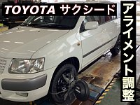 本日はトヨタ・サクシードの アライメント調整をしました。 早速、センサーなどの必要な機材を取付。 セッティングは5分で完了。 調整作業は特に問題なく終わりましたが、 右側の調整箇所が若干、劣化により固着していました。 調整を終わらせて、データをプリントアウト。 調整前は右のフロントト...