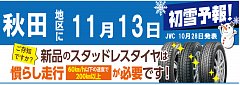 ついに!秋田地区に初雪予報が出ました!! (※ JWC 10/28発表) 特に新品タイヤの場合慣らし走行が必要な為、 新品タイヤご購入検討されている方は、 お早目にご検討ください!! 初雪予報に伴い、タイヤ交換予約も集中するため お早目にどうぞ!! お持ち込みのタイヤ交換のご予約はこちら タイヤお...