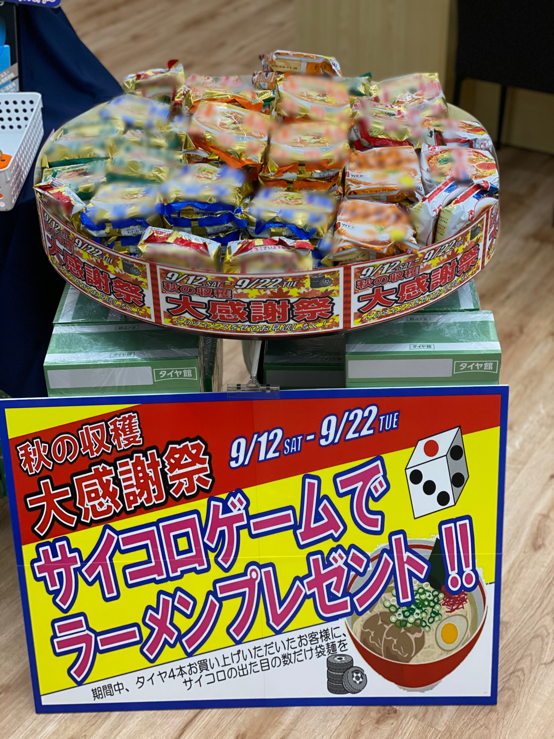 ☆セール中、こんなイベントやってます☆ ポスト 2020年9月15日 こんにちは! いつもタイヤ館尼崎店のホームページを ご覧いただきありがとうございます(#^.^#) 秋の収穫大感謝祭セール 9月12日(土)~22日(火) タイヤ4本交換された客様には 袋麺とタイヤ館オリジナルBOXティッシュ プレゼント!! お待ちいたしております\(^o^)/ TEL:06-6426-3900 タイヤ館尼崎は、尼崎市大西町の 山手幹線道路沿いにあります☆ 山手幹線をお通りの際には お気軽にお立ち寄りください♪ 担当:山本