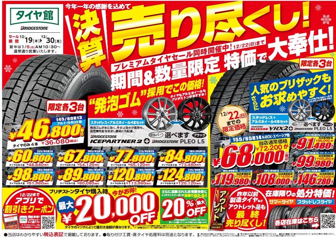タイヤのことならブリヂストンのタイヤ館へ