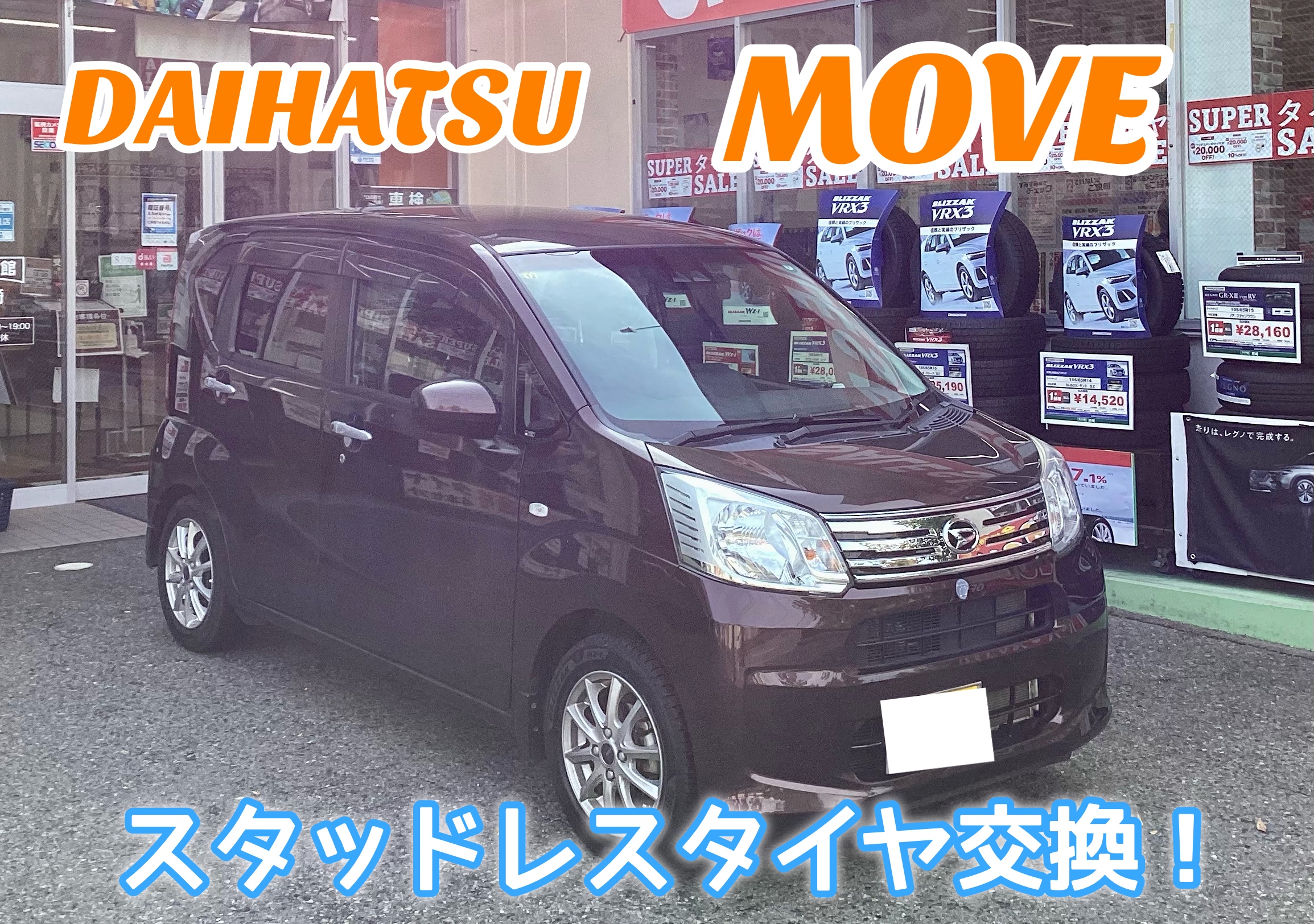 今回は『ダイハツ ムーヴ』のスタッドレスタイヤの交換を