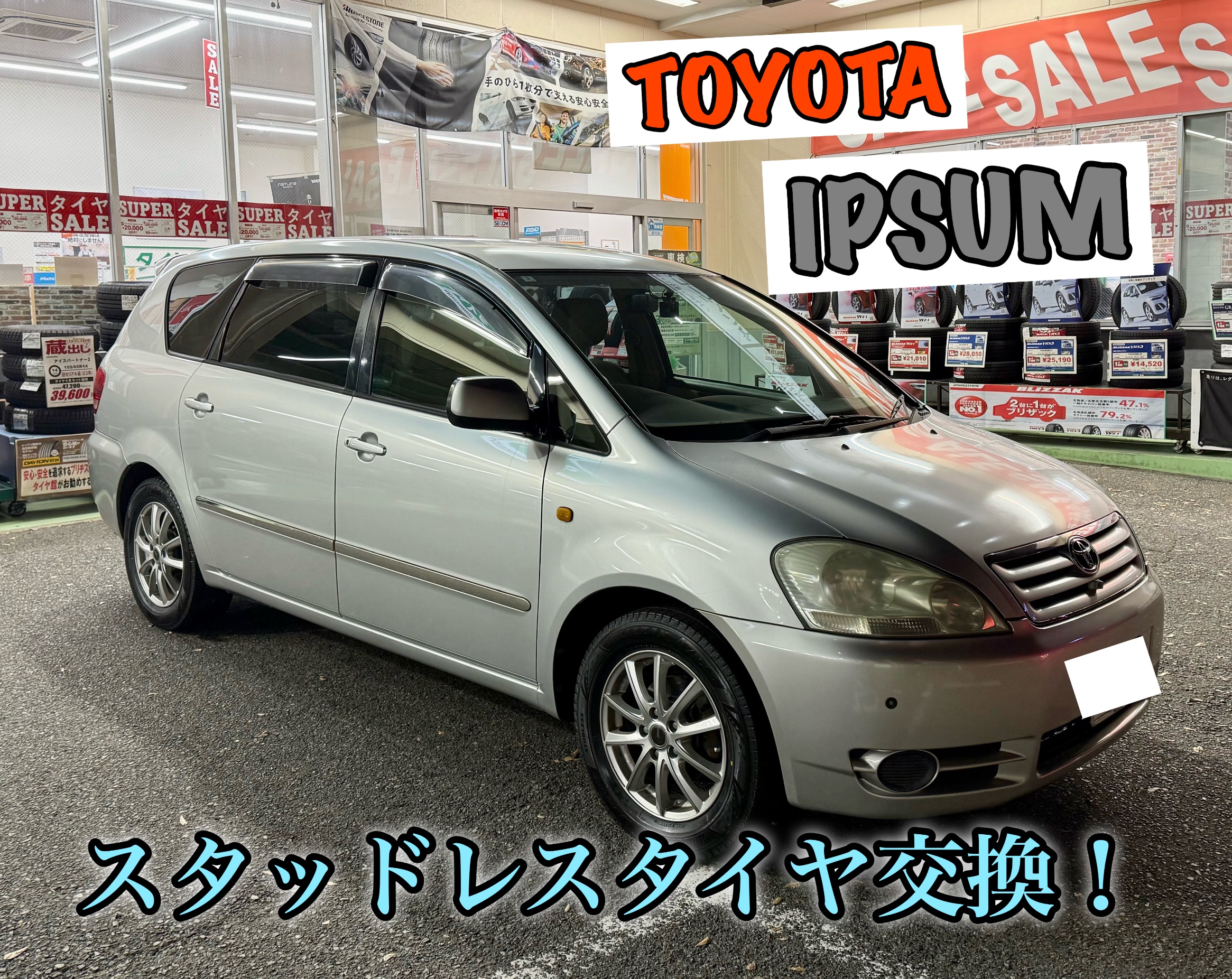 今回は『トヨタ イプサム』のスタッドレスタイヤの交換を