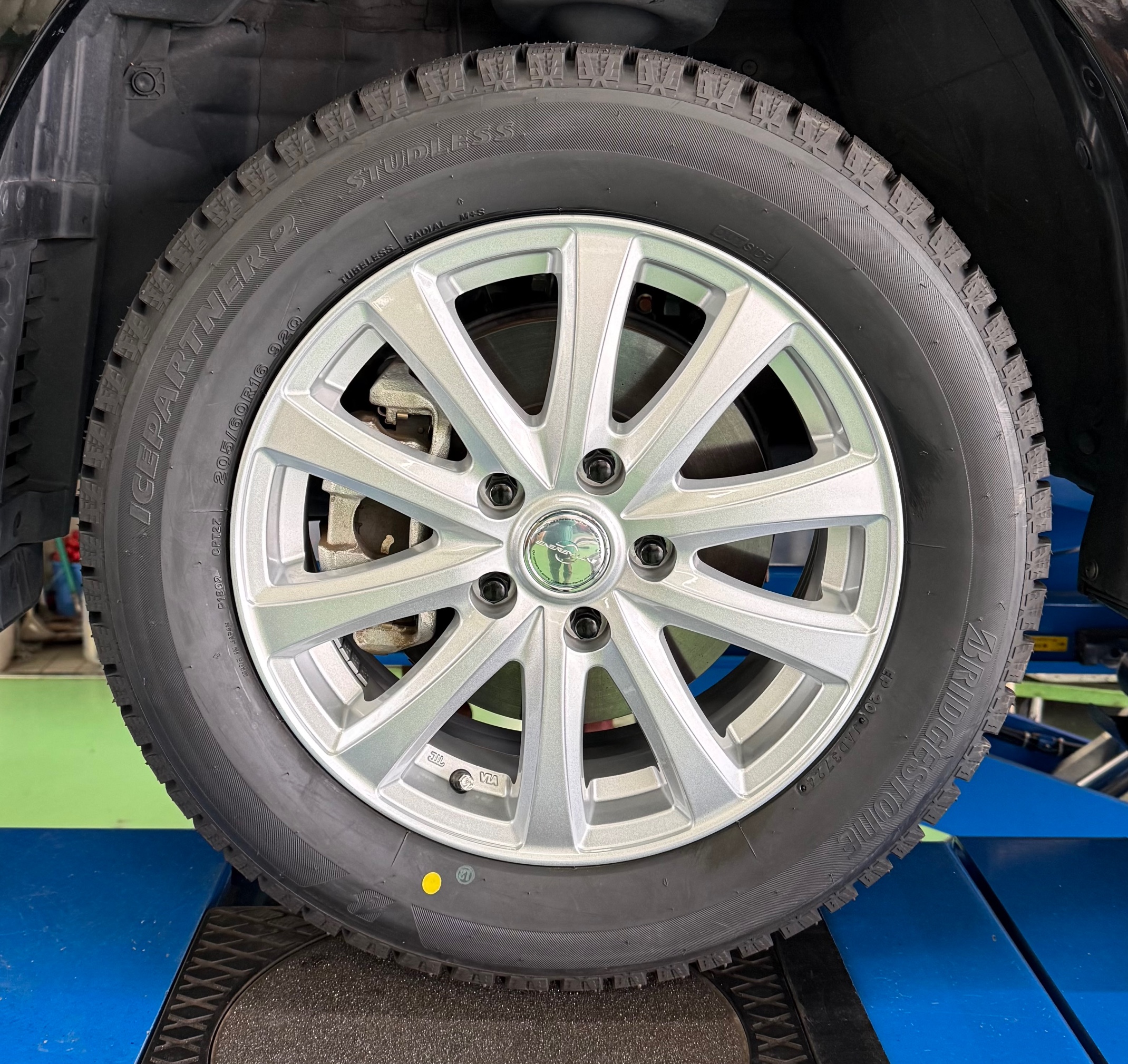 スタッドレスタイヤ交換とアライメントの測定・調整を