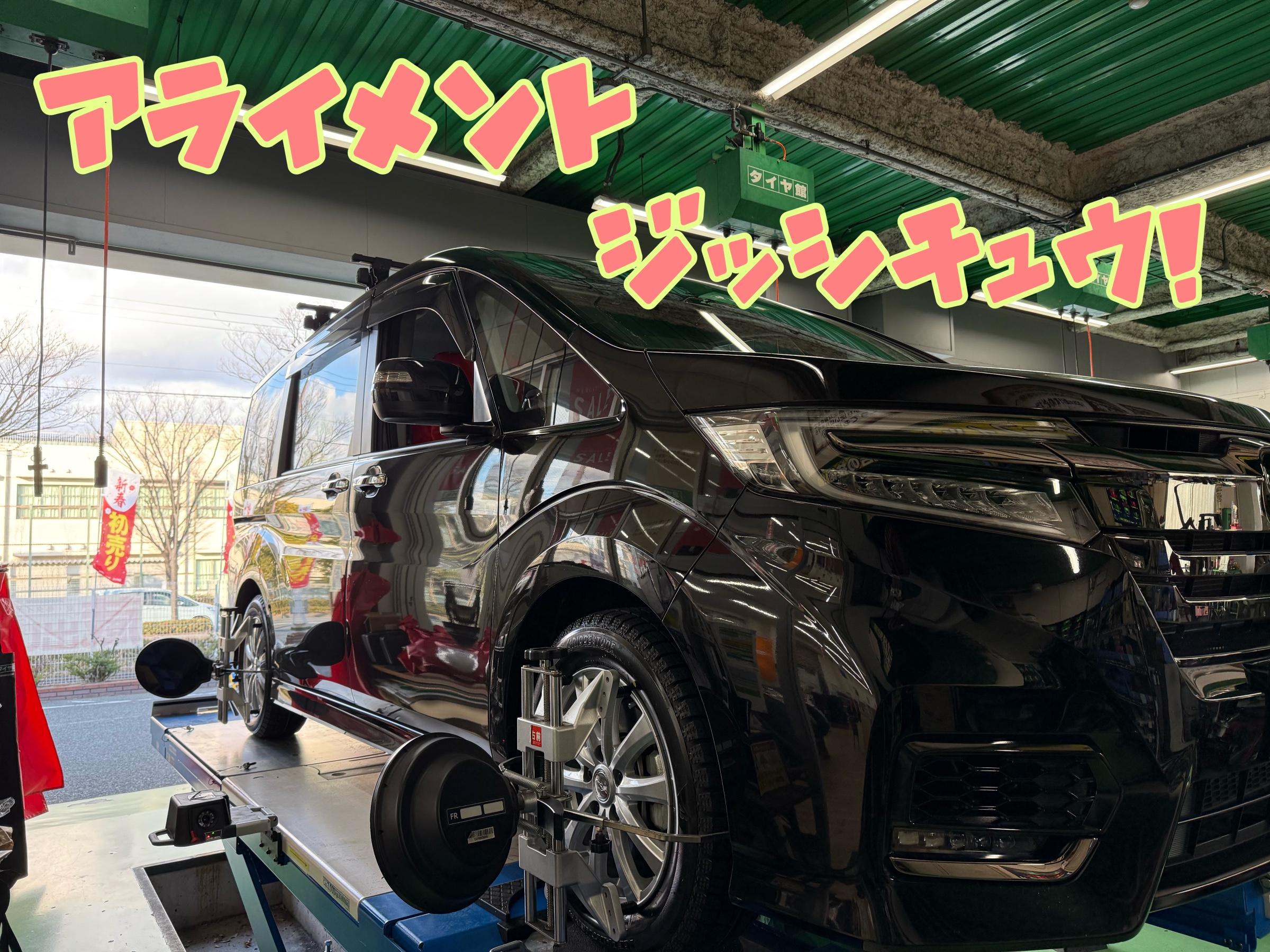 『ホンダ ステップワゴン』にスタッドレスタイヤ交換とアライメントしました!