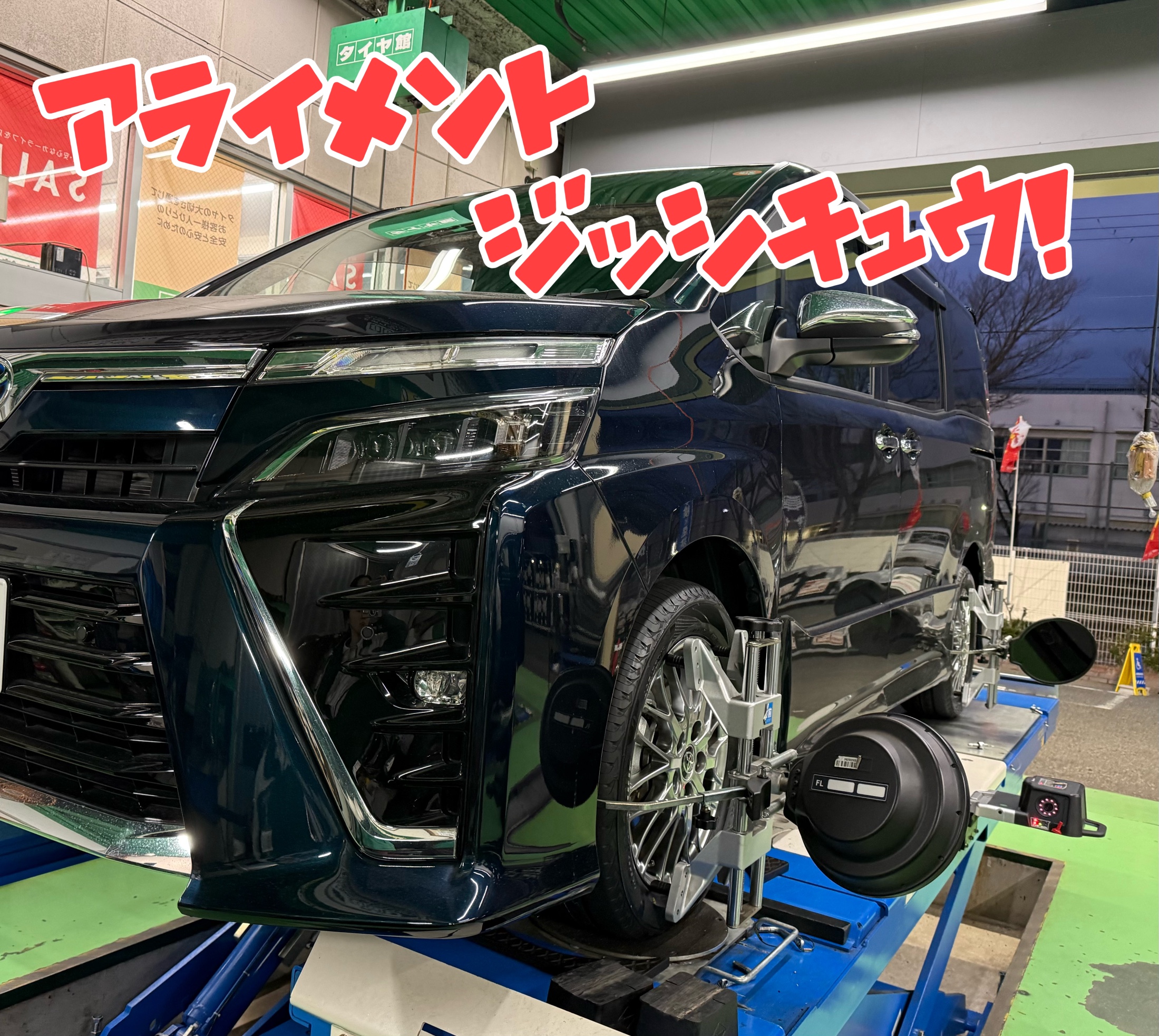 今回は『トヨタ ヴォクシー』にタイヤ交換とアライメント測定・調整を