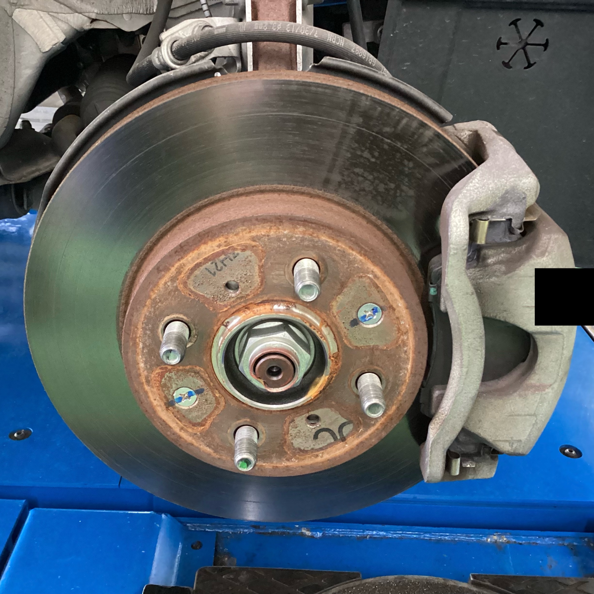 ホイールの取付面(ハブ)の錆び取りを行い、錆びの浸食を止める為、錆び止めを行うハブ防錆