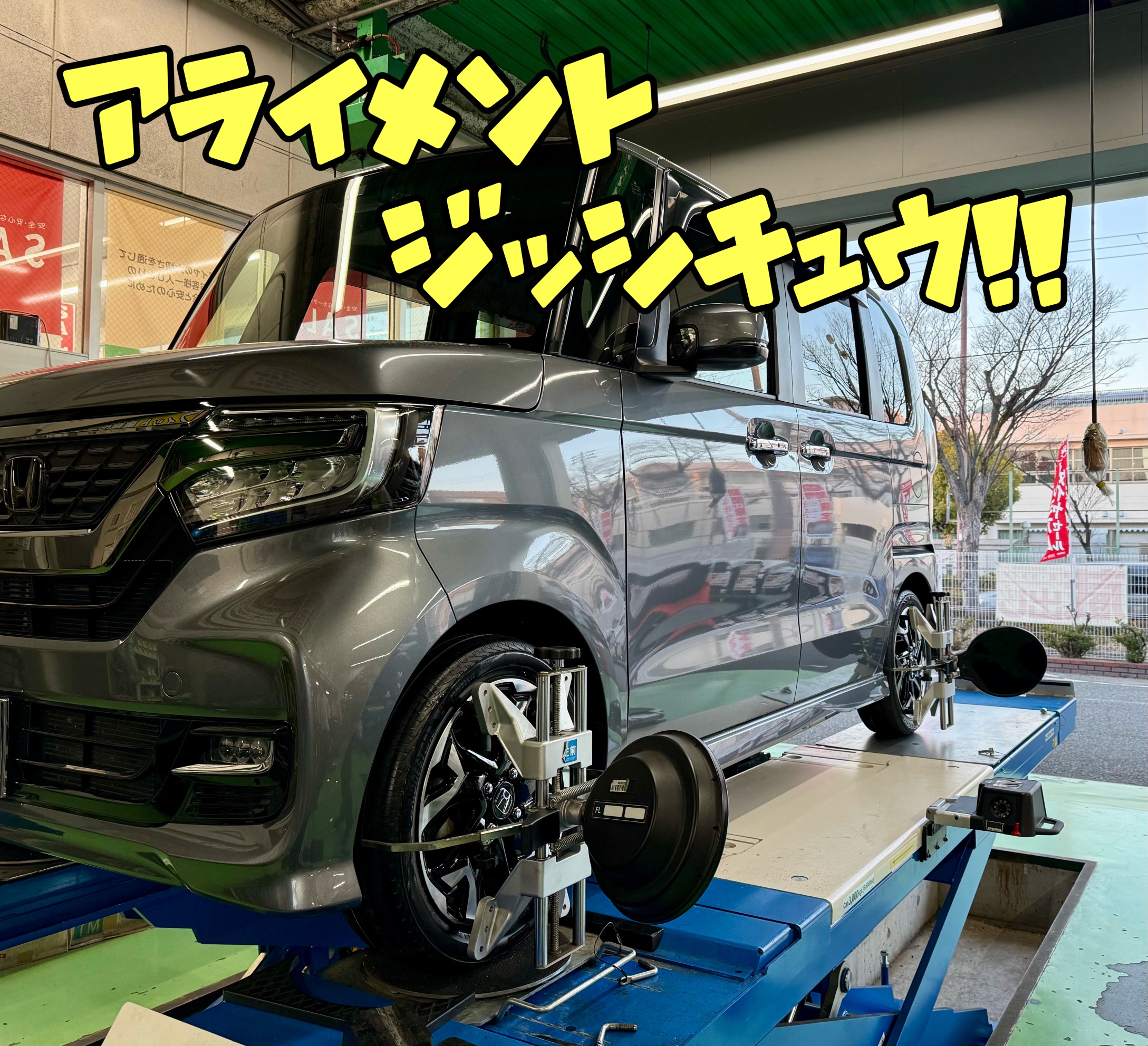 今回は『ホンダ N-BOX』にタイヤ交換とアライメント測定・調整