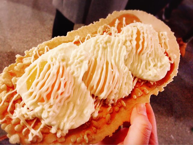 でも、久々の屋台で盛り上がって玉子せんべいを買ったら