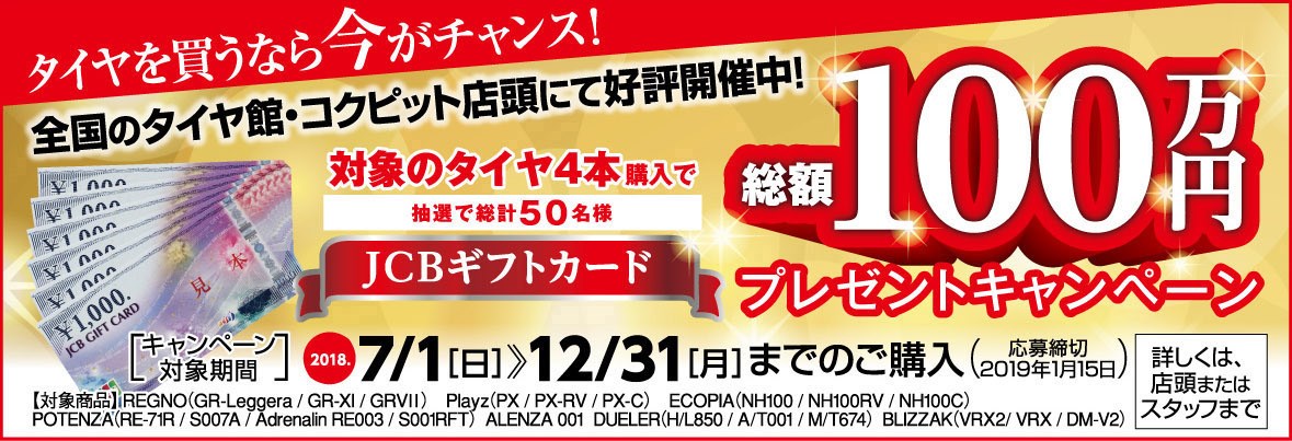 今、対象のタイヤ4本お買い上げで
