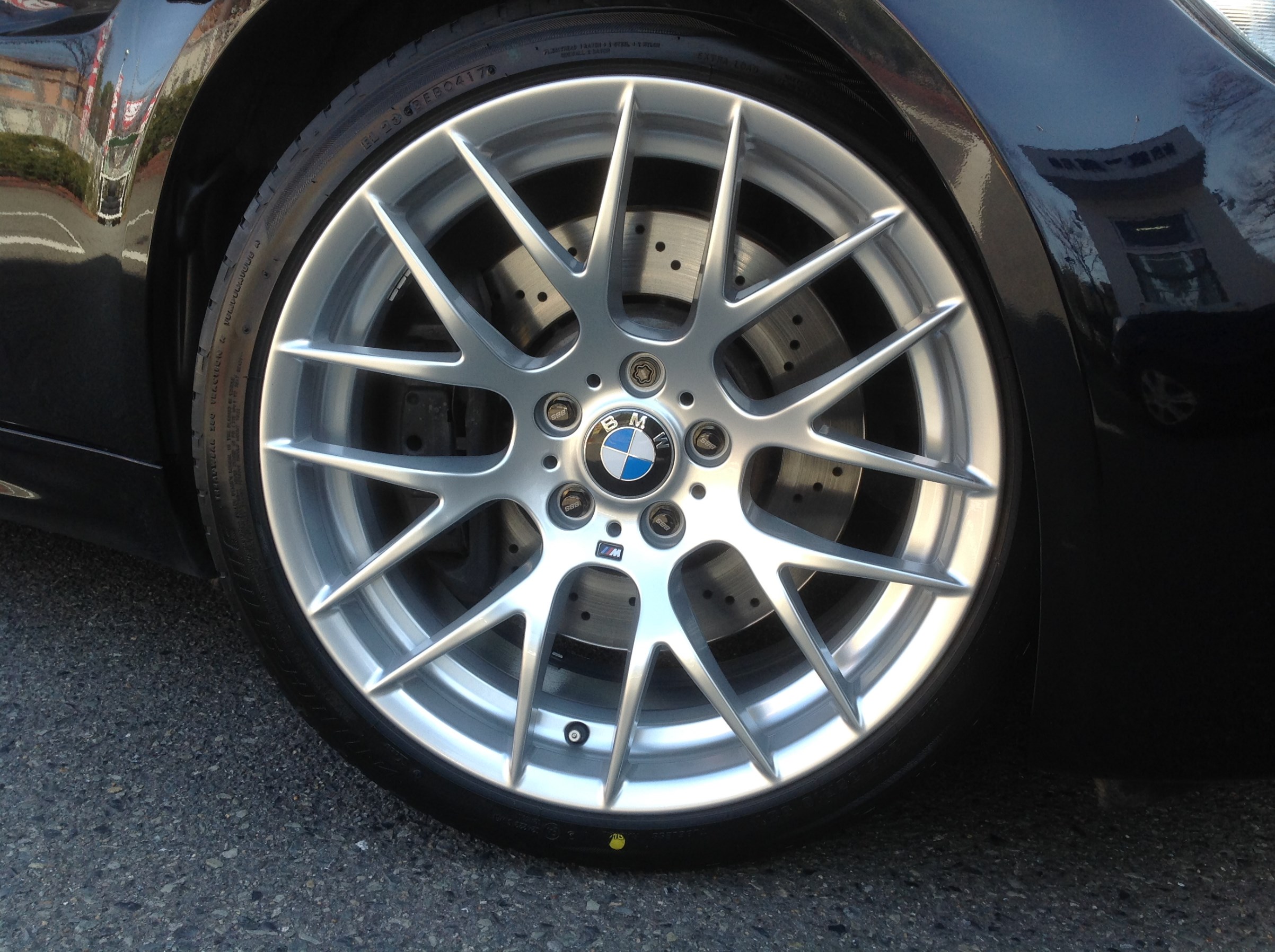 今回のホイール装着は憧れのスポーツカーBMW M3でございます(>_<) こちらにポテンザとセットでホイールを装着しました。 純正から19インチの装着でインチアップではないのですが仕上がりはGOOD! シルバーのシンプルなデザインがレーシーさをかきたてます。 ダストの多い輸入車には特におすすめのホイールコーティング施工も施し お客様にも大変ご満悦頂きました。 100km点検でのご来店是非お待ちしております。 |