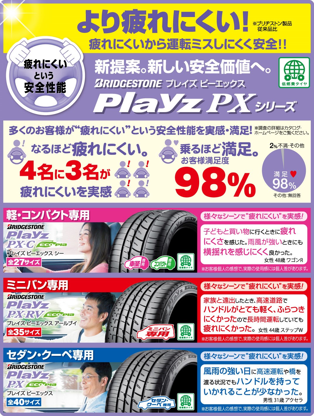 新車装着よりより疲れにくいタイヤを選ぶなら「プレイズPXシリーズ」