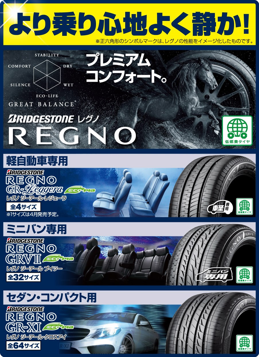 新車装着よりより乗り心地良く・静かなタイヤを選ぶなら「レグノシリーズ」