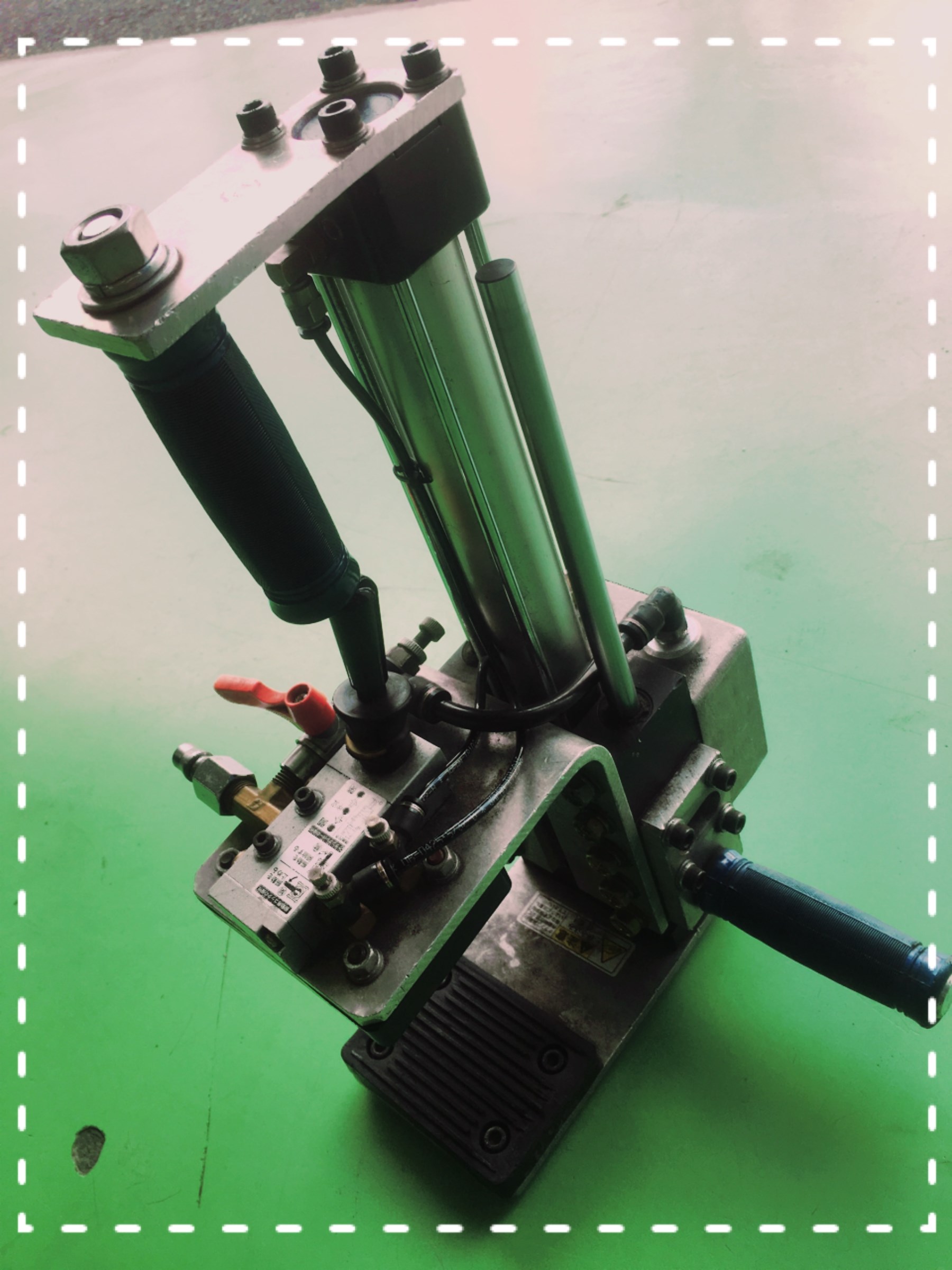 新品のタイヤを取り付けの際はコチラの器具を使って正確に車軸の中心にタイヤを装着。