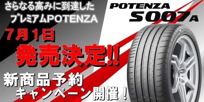 新商品!POTENZA S007A 7/1発売! ポスト 2018年6月8日 待望のPOTENZA新商品発売決定! 詳細はこちら プレミアムセダン、スポーツカーにお薦めの プレミアムタイヤとなっております! 上質な乗り心地と高い運動性能を兼ね備えたタイヤです。 現行モデル POTENZA S001 の後継モデルとなっております! スポーツカーはもちろん運動性重視の方にはオススメです! 担当:味山