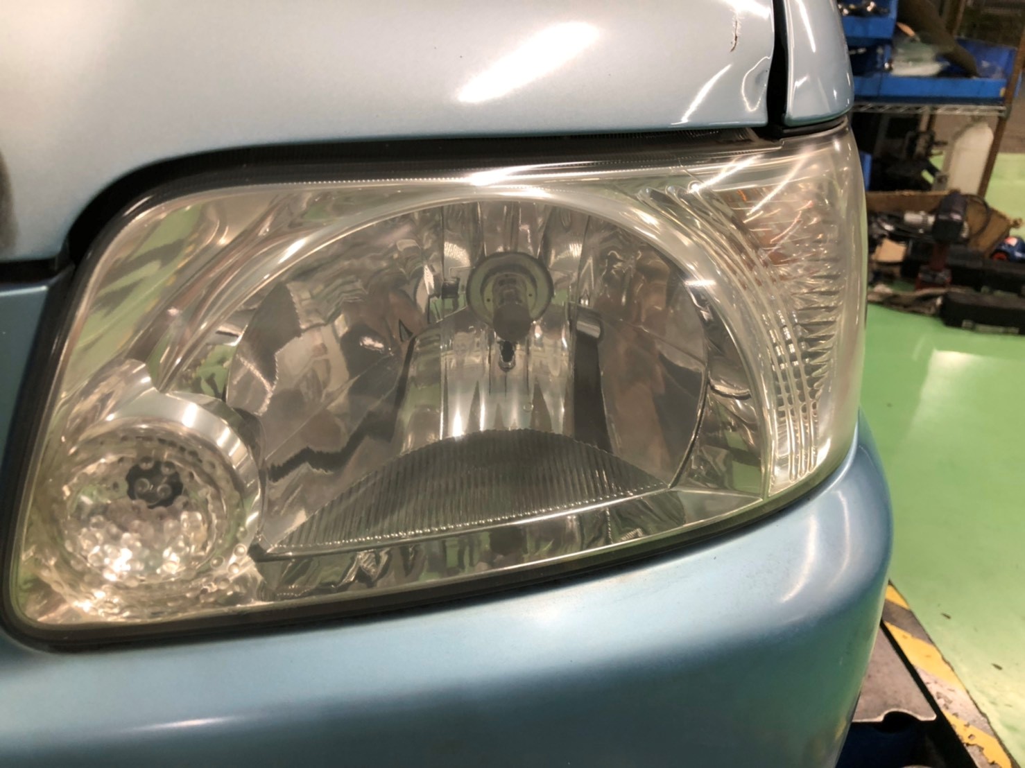 お手入れ中、ヘッドライトコーティングを