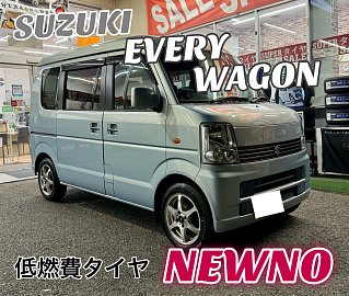 こんにちは!いつもタイヤ館尼崎をご利用いただきありがとうございます! 今回は『スズキ エブリイワゴン』にタイヤ交換を させていただきました際のご紹介をします! タイヤ:NEWNO サイズ:155/65R14 基本性能を備えた低燃費にも考慮したタイヤです! 低コストながら、雨の日の安全性や摩耗ライフ...
