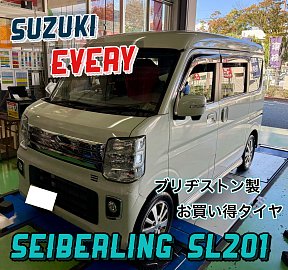 こんにちは!日頃より当店をご利用いただき誠にありがとうございます! 今回は『スズキ エブリイ』のタイヤ交換を させていただきました際のご紹介をします! タイヤ:SEIBERLING SL201 サイズ:165/60R14 基本性能を有する、ブリヂストン製のタイヤです。 価格と性能のバランスに優れているので、 ...