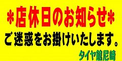 いつもタイヤ館尼崎店をご愛顧頂き、ありがとうございます! 明日、26日は店休日になります。 ご迷惑をお掛けいたしますが、 今後も尼崎店をよろしくお願い致しますm(__)m