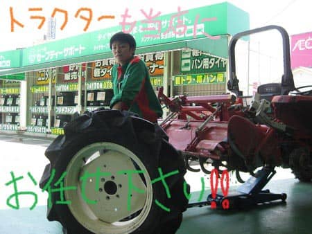 当店では乗用車はもちろん、トラクターのタイヤ交換もしています!