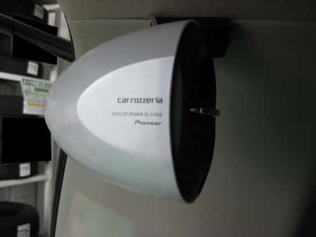 このスピーカーは、車の後方上部に取り付けることによって、音が