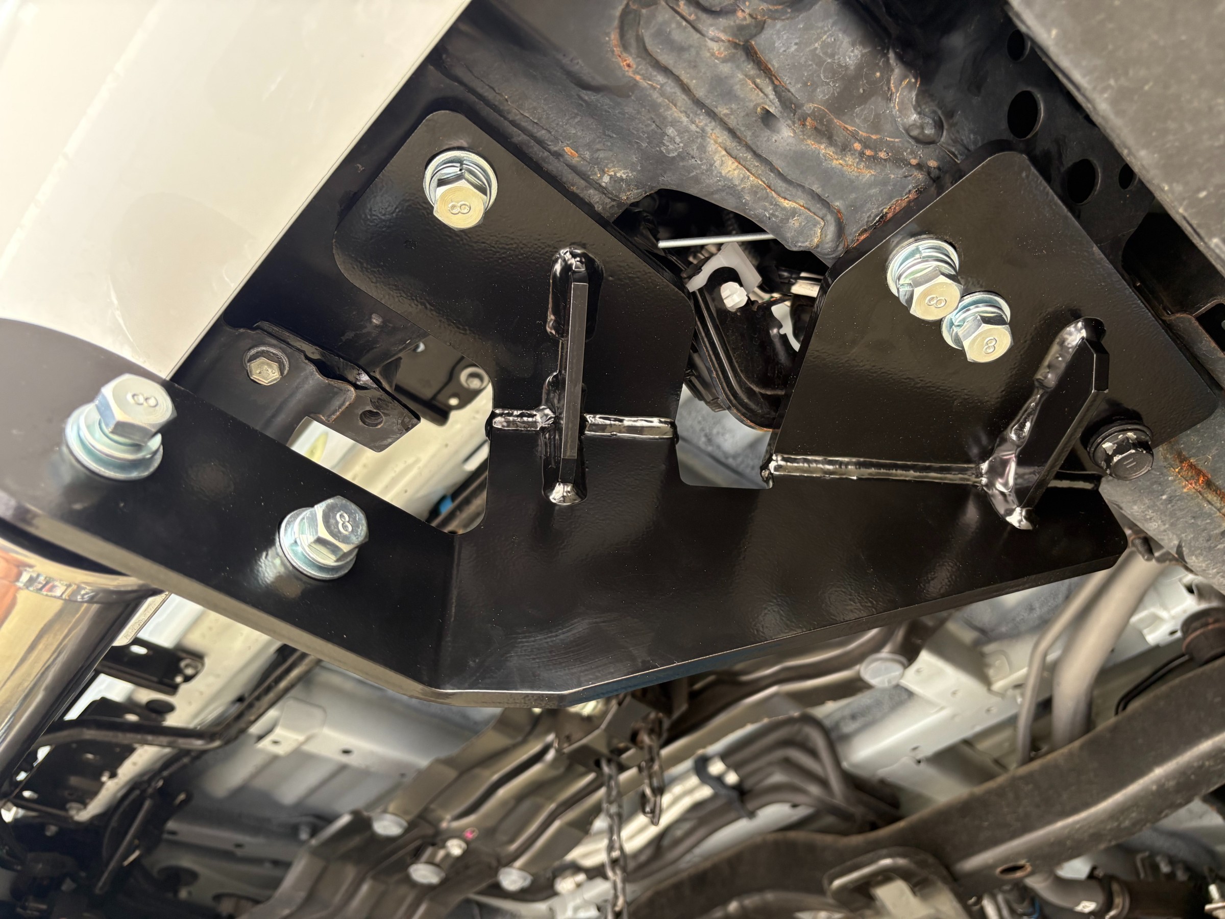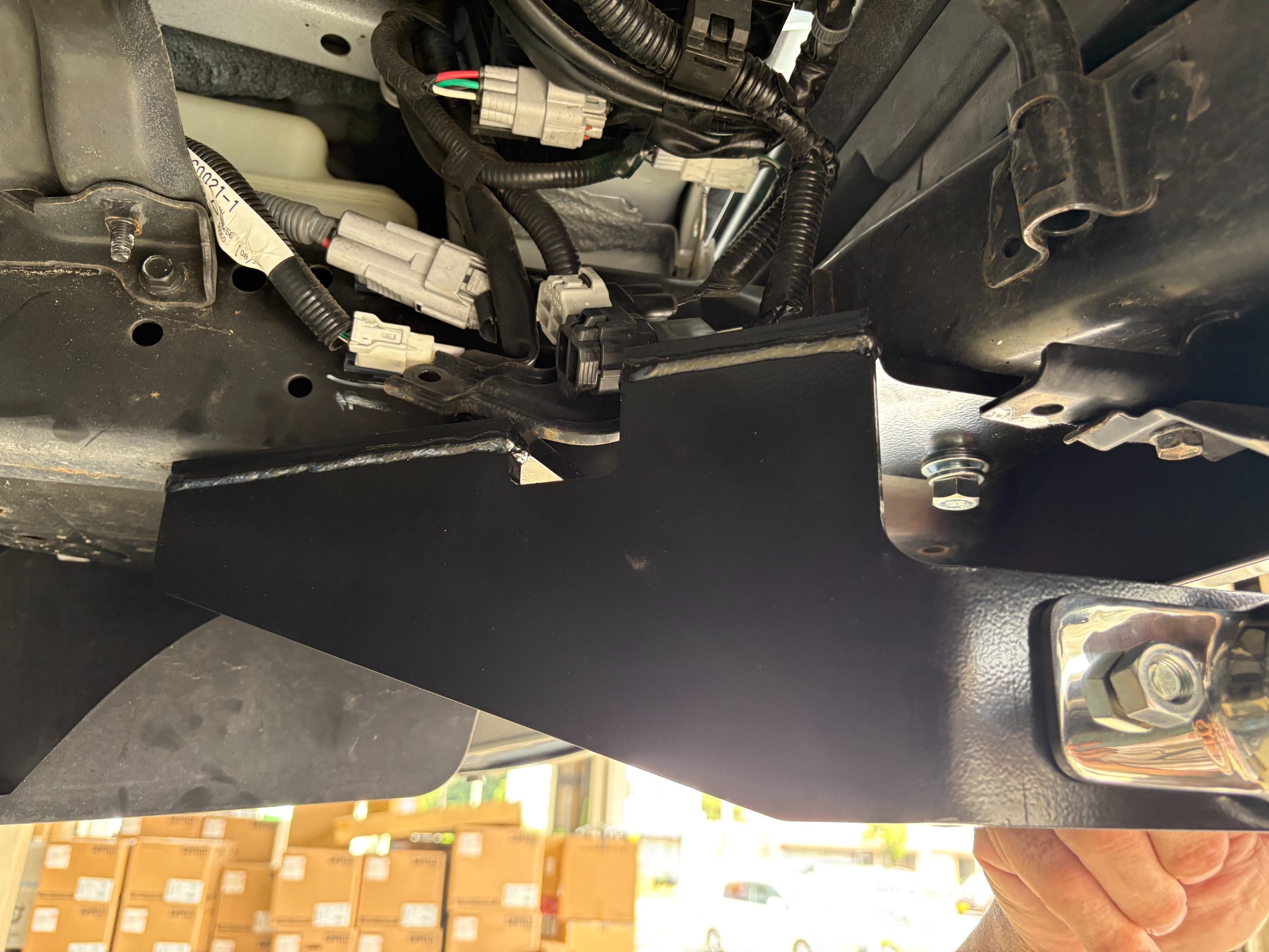 取り付け方法は車種によって様々ですが、LX570は車体のフレームの純正の穴を使用して
