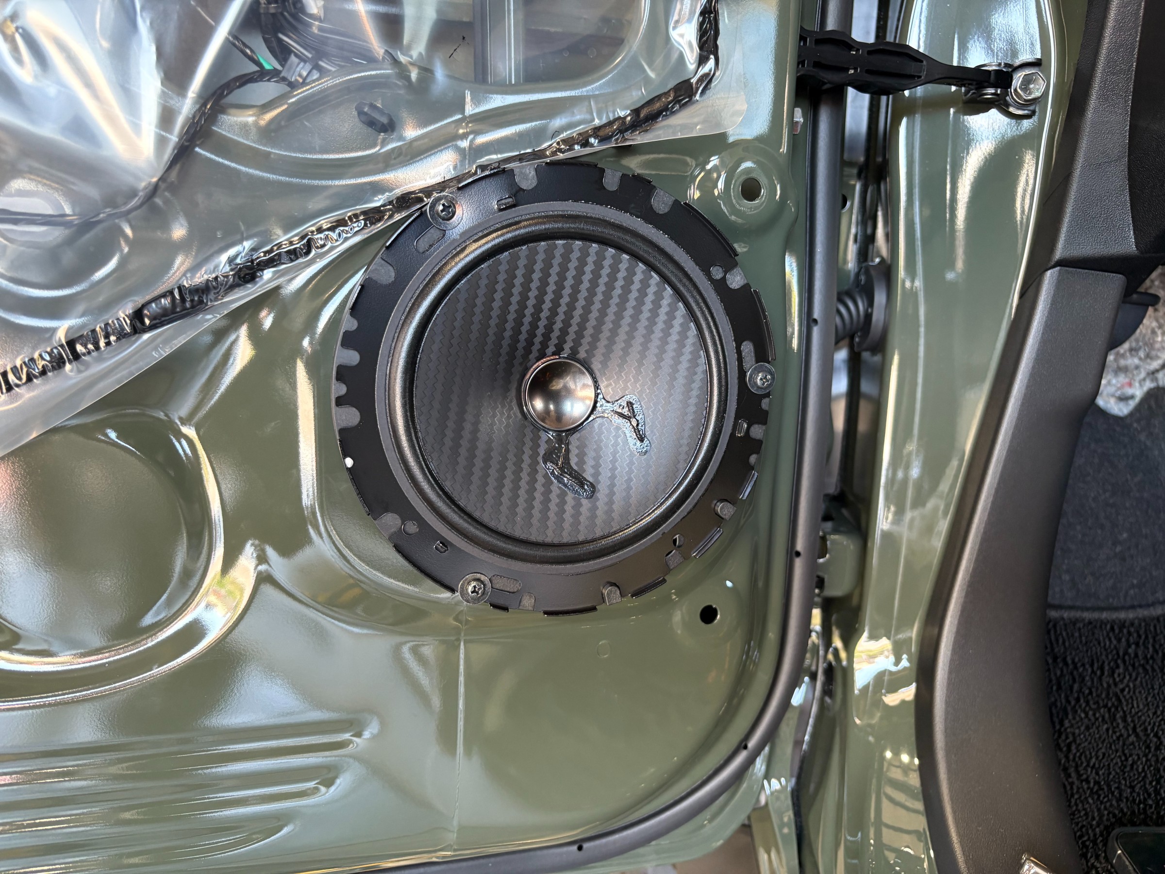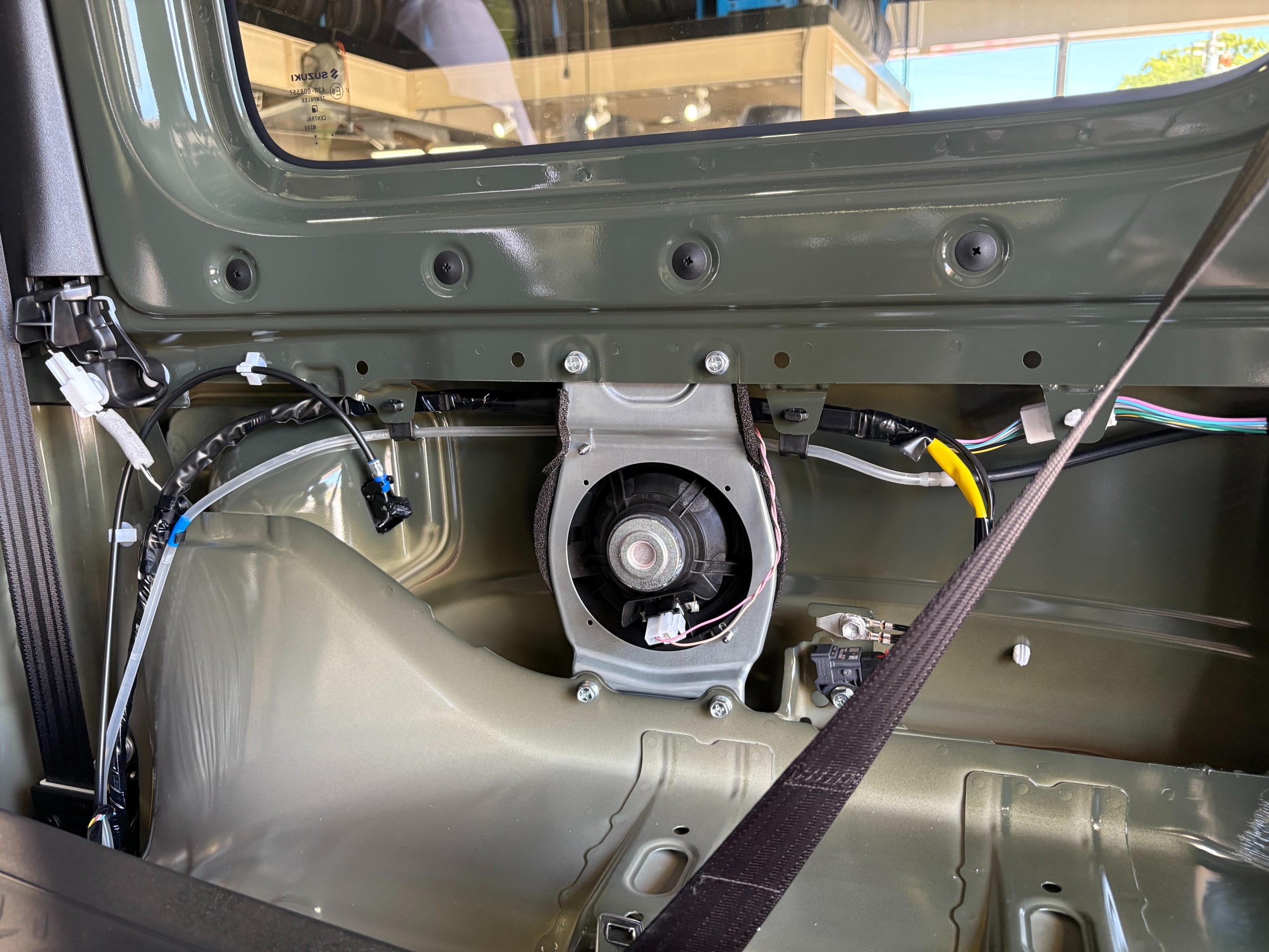 外したフロントの純正スピーカーを後ろのラゲッジルームに取り付けちゃうんです!