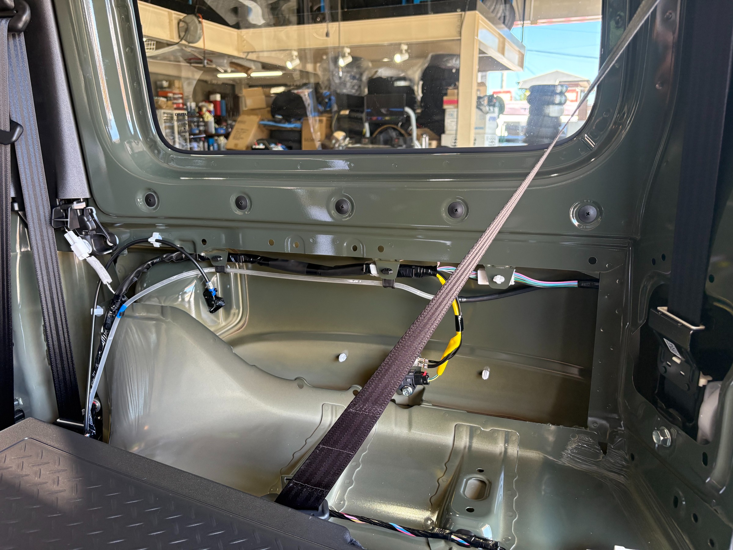 そして、外した純正スピーカーをラゲッジへ移設しています!。