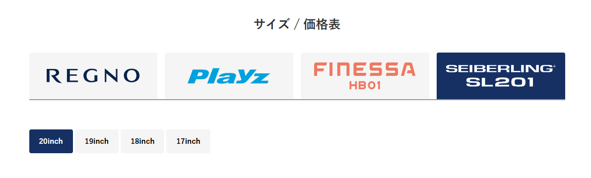 すると、下の画像のように各サイズ一覧と価格が確認できます!(^.^)