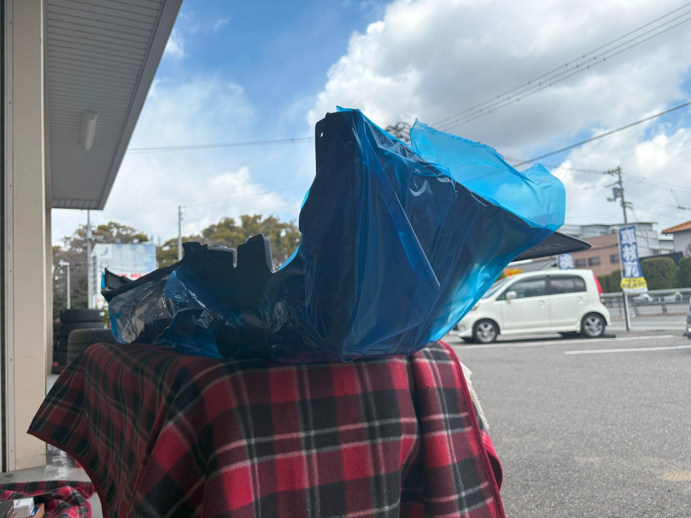 外したバンパーはしっかりと保護しておきます(^.^)