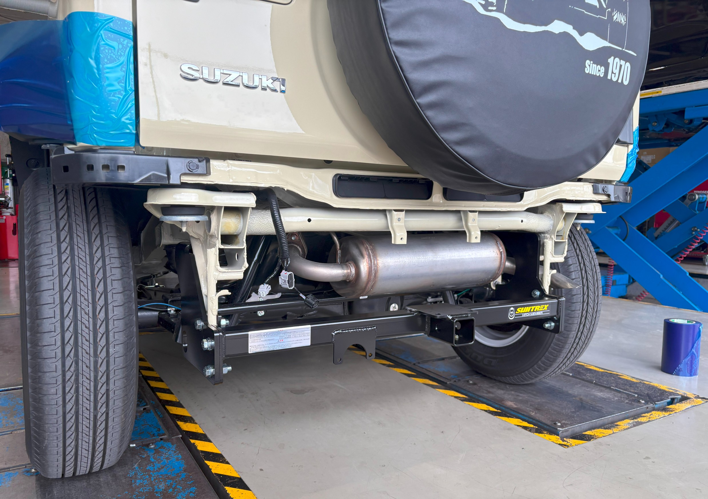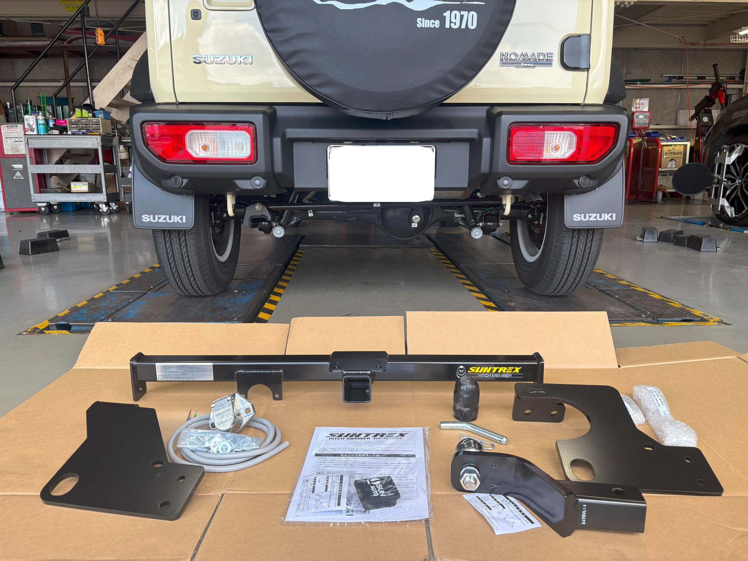 大人気!スズキの【ジムニーノマド】の後ろ姿が頼もしくカッコよくなった件! サン自動車の【サントレックッスヒッチメンバー】を取り付けました!