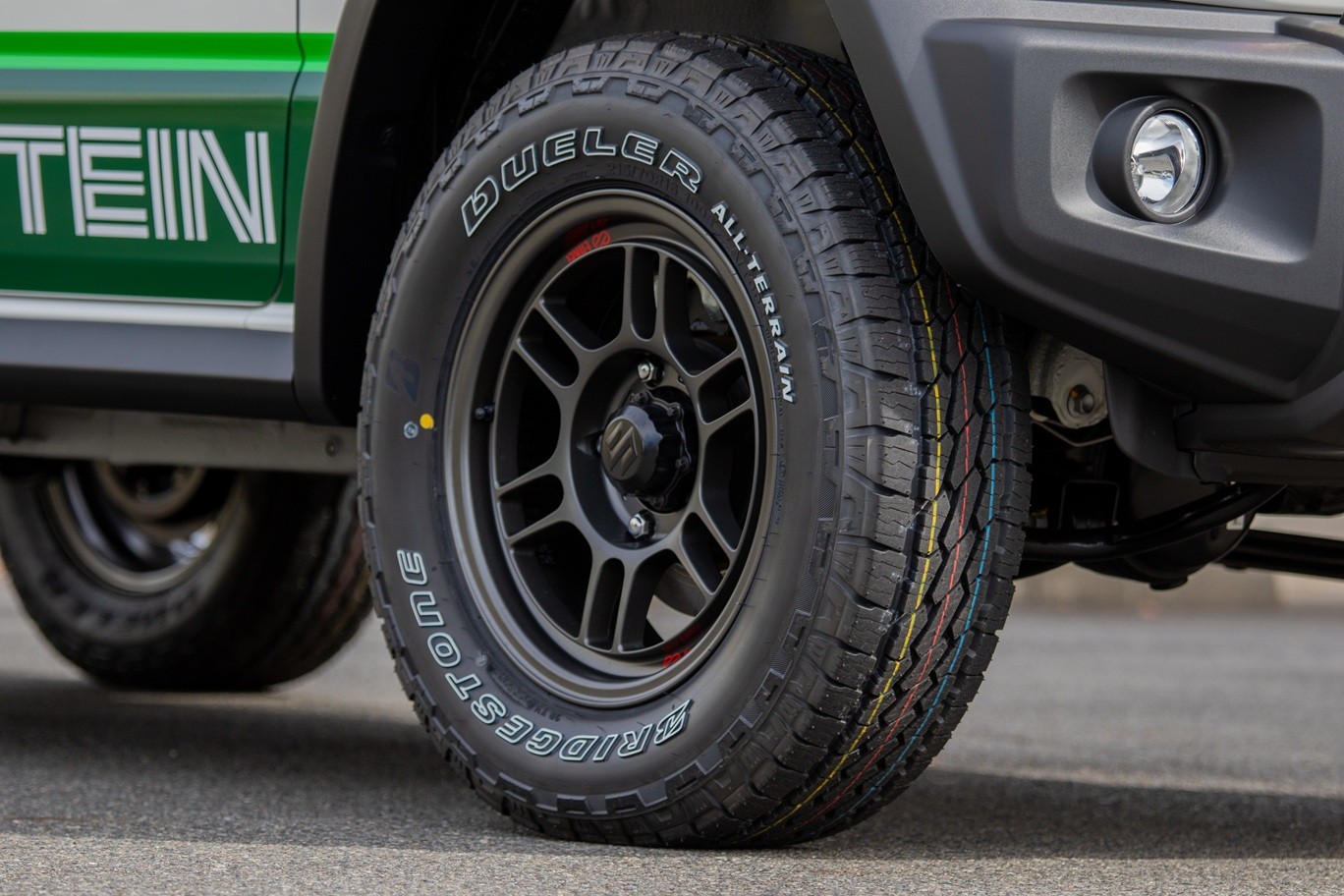 ジムニーノマドなのですが、そのデモカーにブリヂストンのホワイトレタータイヤ