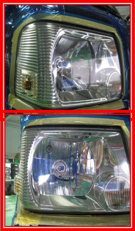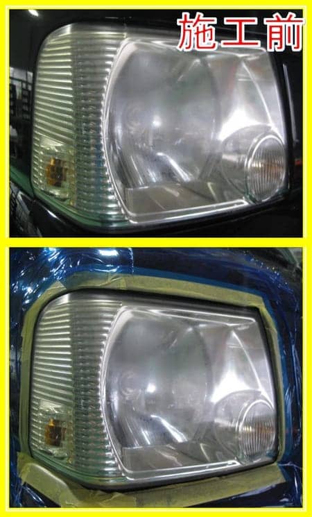 写真を見てもらうと施工前のレンズは曇っているのが分ると思います!!