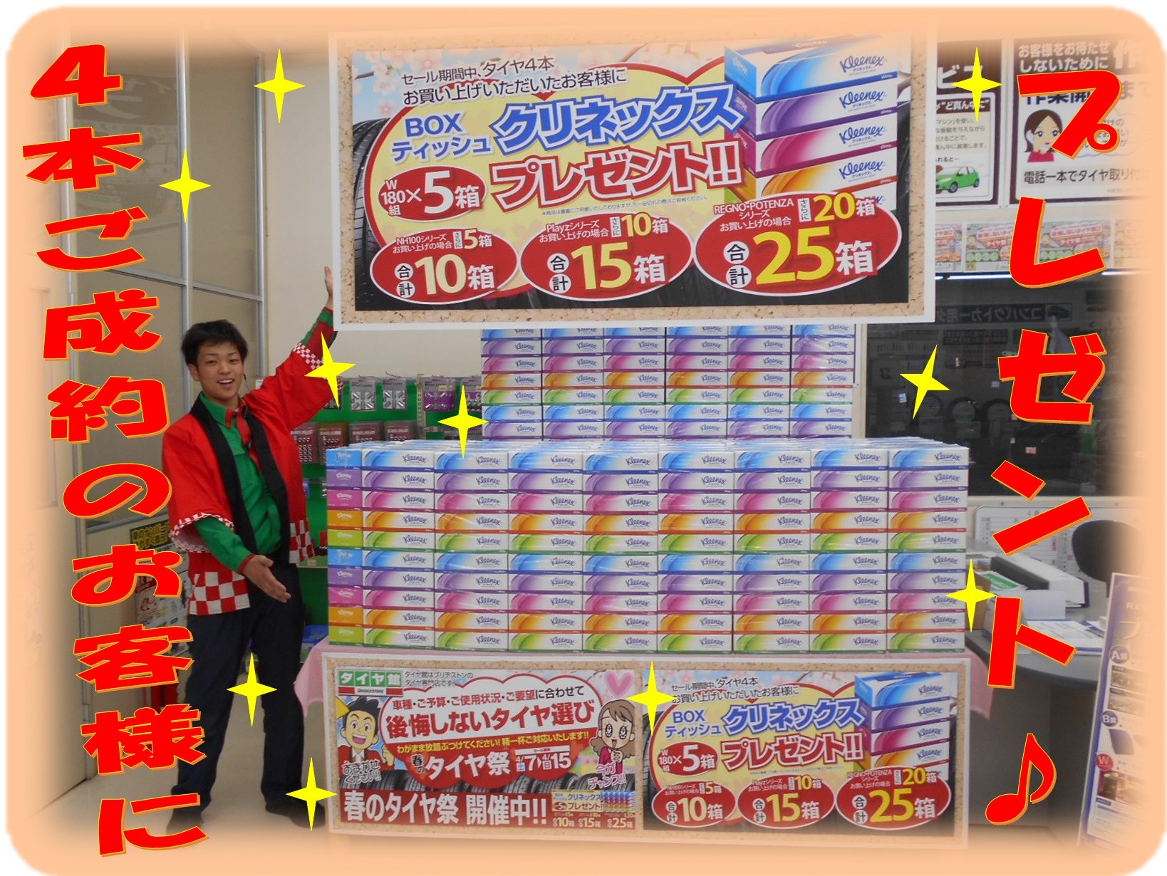 セール期間中、タイヤ4本お買い上げ頂いたお客様に対象商品に応じて