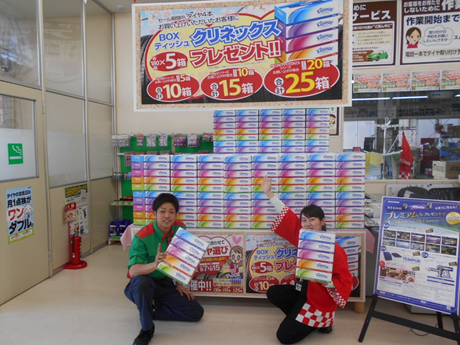 今回のセールではタイヤ4本購入でティッシュ5箱プレゼント!!