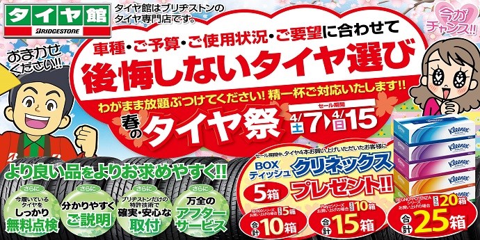 4月7日より開催中の『春のタイヤ祭』本日最終日となっております(o^-')o☆