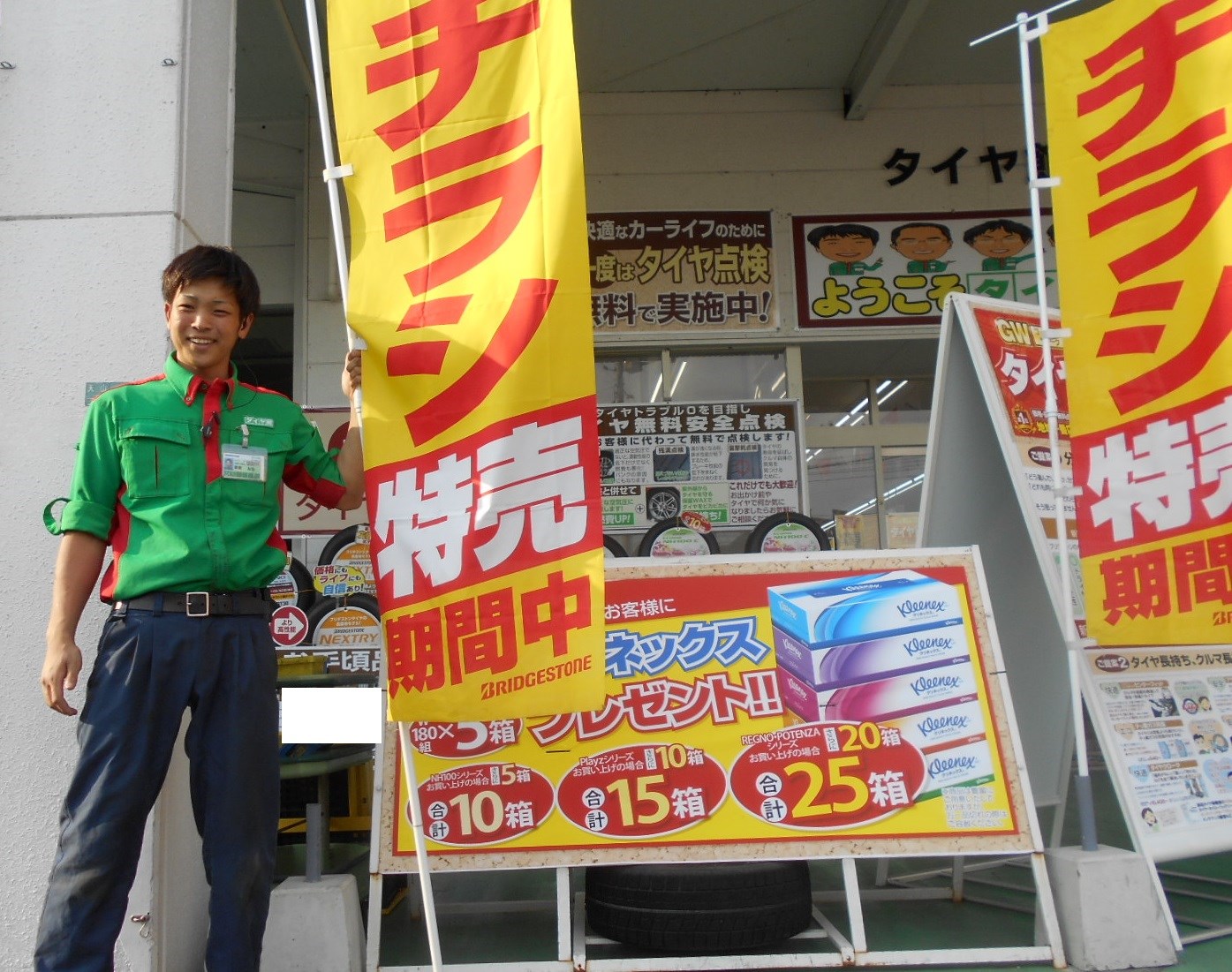 タイヤ4本購入頂いたお客様には『クリネックスティッシュ』プレゼントヽ(^◇^*)/