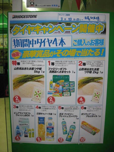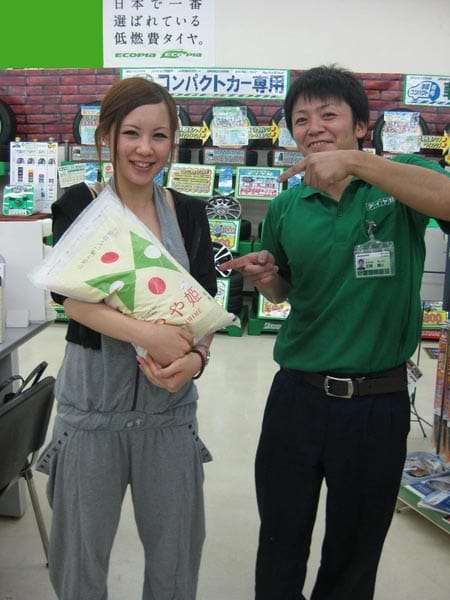 「良いタイヤも買えて、お米ももらえて大満足!」と、