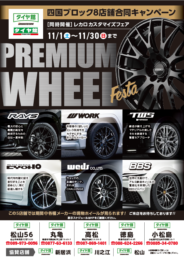 タイヤの事も!国産~輸入車までホイールも!エンジンオイルも!タイヤ館松山56店へ!