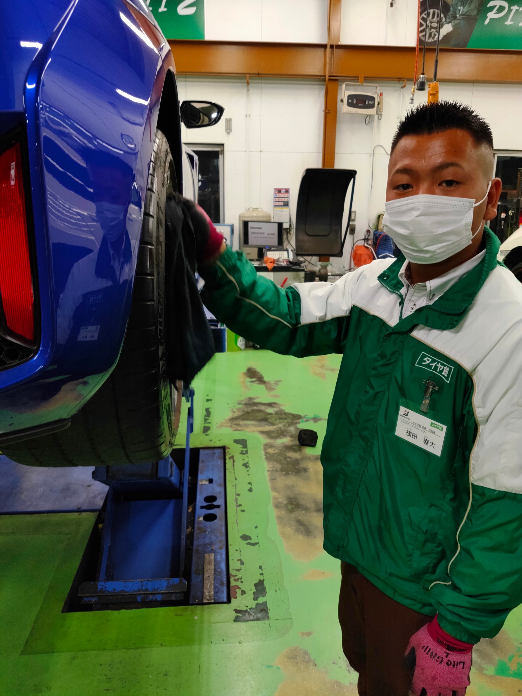 新しいタイヤ交換後はもちろん、オイル交換などの時にも行っています!