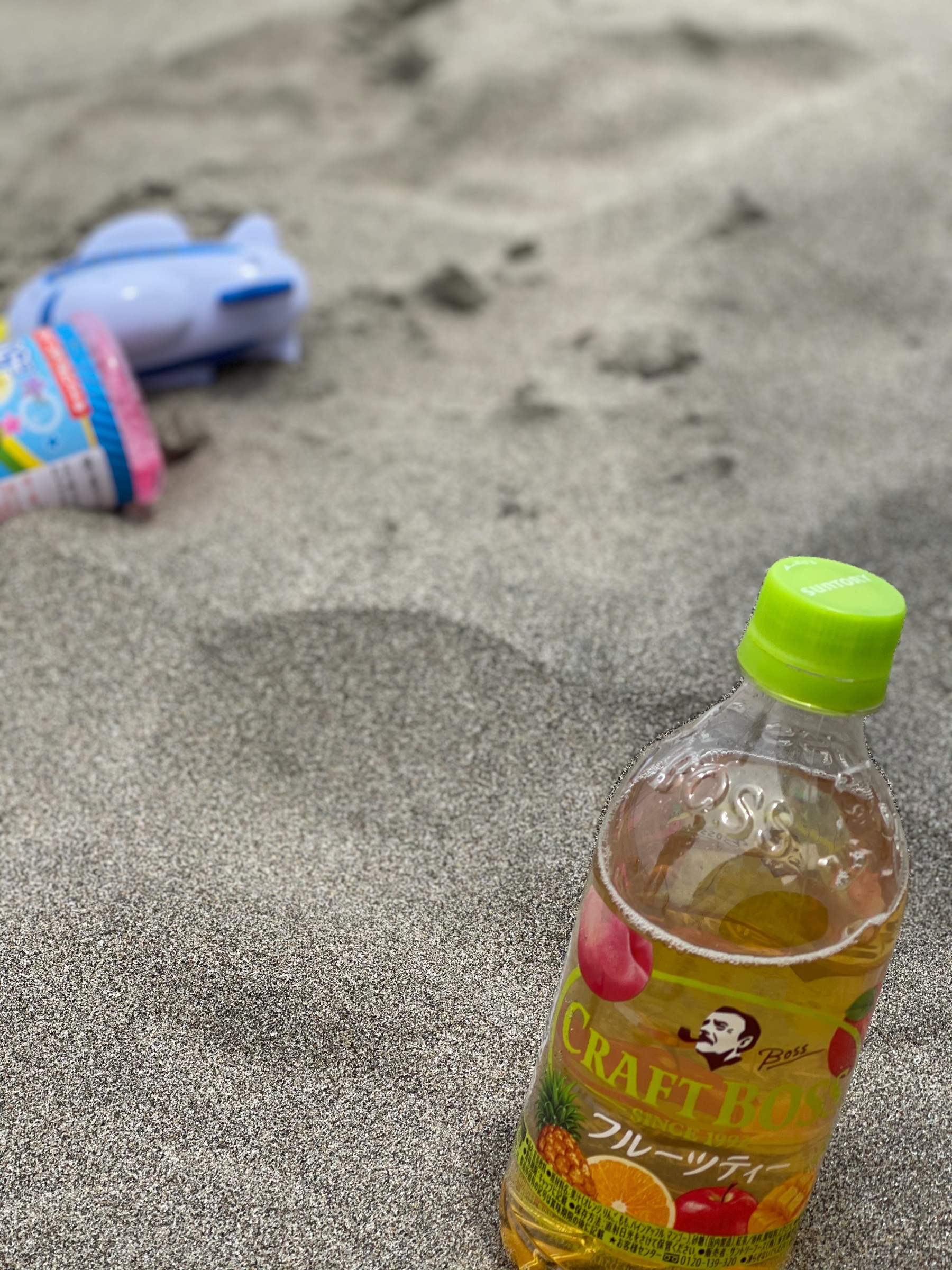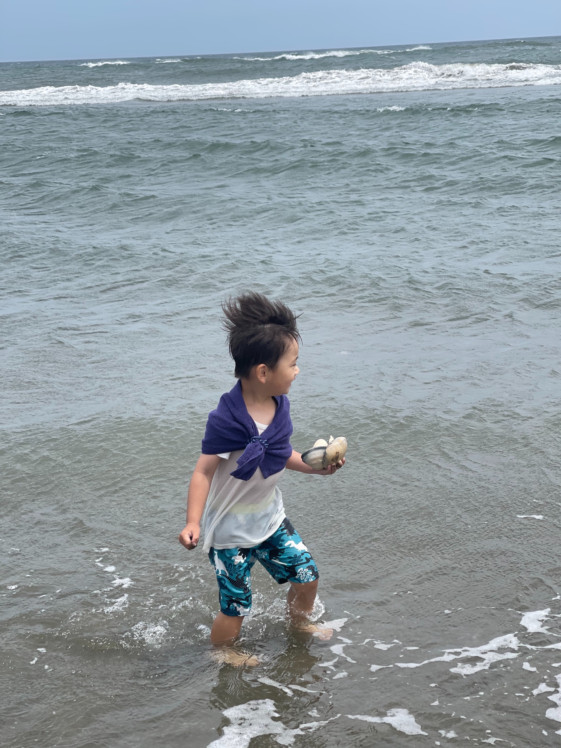 子供と貝殻を拾ったり砂浜で遊んだりと