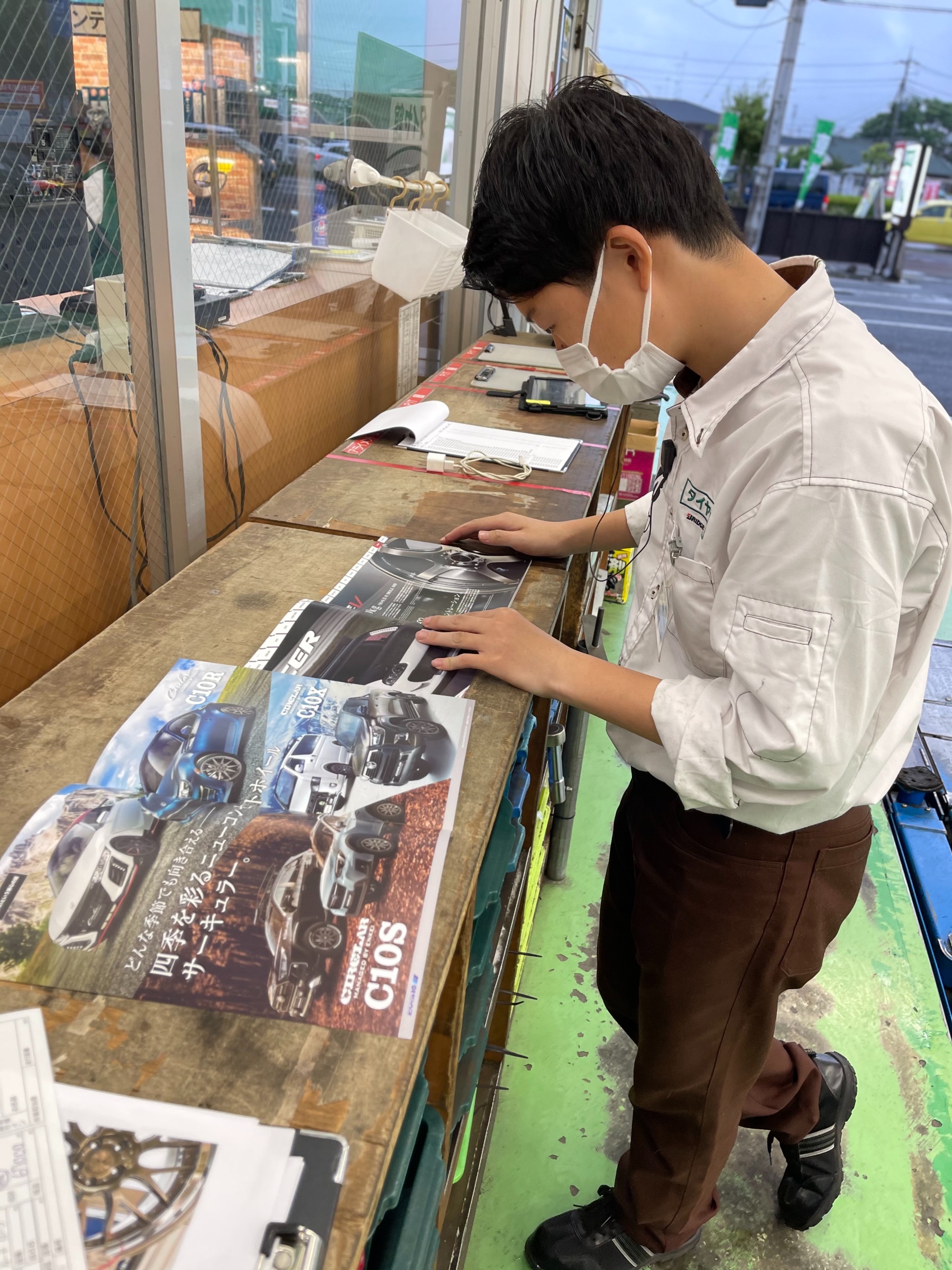 今日は共豊さんに新商品のホイールとカタログをもってきて頂いたので