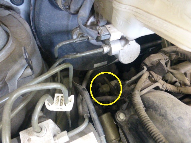 A/Cコンプレッサー下側の固定ネジを緩めると、