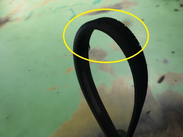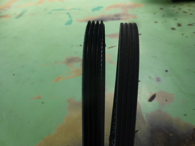 右側が新品ベルトで比較してみると消耗しているのがわかります。