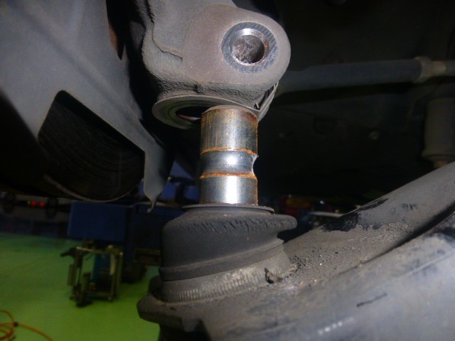 上側のボルトを外してボールジョイントを抜きます。